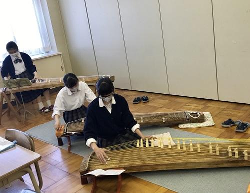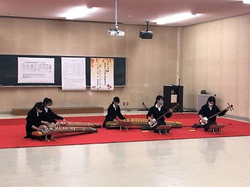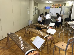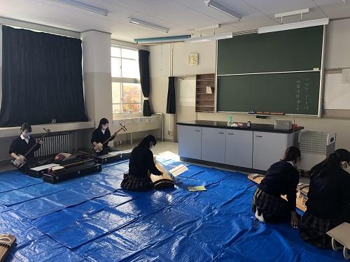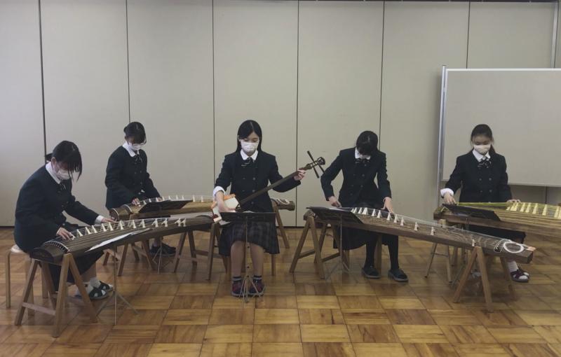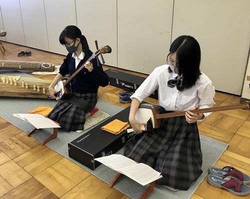 今年は全国こども歌舞伎まつりや本校の文化祭が中止、合同発表会も録画出演となりとても残念でした。現在は1・2年生で11月に開催される次年度全国総文の選考会に向けて練習しています。今後は全国こども歌舞伎まつりの「勧進帳」で演奏する三味線の練習にも力を入れていきます。