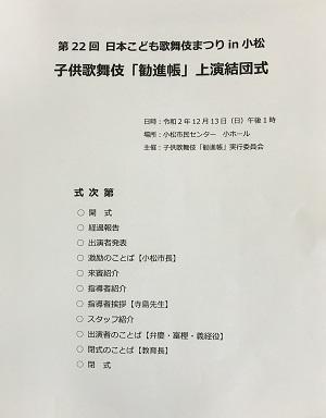 12月14日(土)小松市公会堂にて、来年5月4日・5日に開催される、第22回日本こども歌舞伎まつりin小松の結団式が行われました。