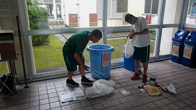 野球部では部室掃除の一環として、ピロティーのゴミの分別活動を行いました。