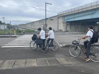 この日の早朝、PTA役員の方々をはじめ学校教職員参加で、駅から学校までの交差点を中心に自転車乗車マナー一斉指導を行いました。暑さのせいか普段より若干自転車通学の生徒が少なく感じましたが、並走、イヤホンなどマナー違反、危険運転などの生徒は見られませんでした。これからも安全第一で乗車して欲しいです。