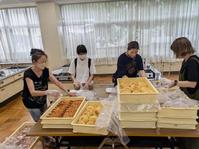 昼食には、地元で人気のパン屋さんのパンの注文をとり、販売しました。
