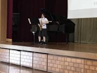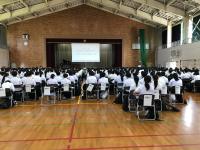 音楽コースの生徒によるミニコンサートで始まり、生徒会長から普通科、芸術コース、部活動、学校行事について説明がありました。