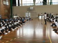 避難後、消防職員の方より地震・水害・火災の災害について、命を守る知識をお話ししていただきました。