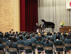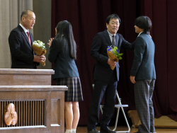 離任式では、転勤される先生方から生徒たちへの最後のメッセージが送られました。