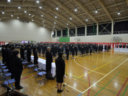朝には雪もちらつくほど寒くなったこの日、今年度を締めくくる表彰披露・終業式・離任式が執り行われました。