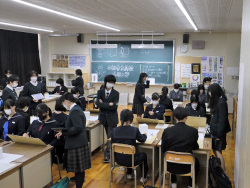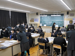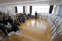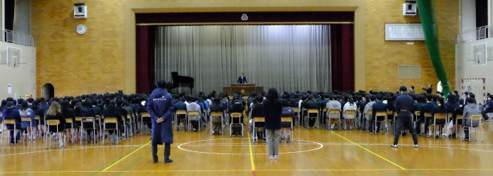 能登半島地震後の学期始めとなったこの日、重々しい空気の中、3学期始業式が執り行われました。学校での生徒たちの様子は、年明け初の開校日となったため、久しぶりに友人たちの顔を見て少し緊張がほぐれたのか、日常を取り戻しはじめた様子でした。