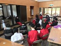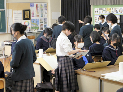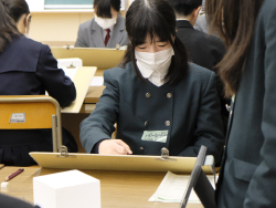 中学生に近い生徒の目線で、わかりやすいように工夫された説明と指導に、参加した中学生は、緊張しながらも真剣な面持ちで取り組んでいました。