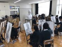 この日、芸術コース体験入学が行われ、美術専攻ではデッサンの基礎講座を本専攻2年生が中心となって開きました。