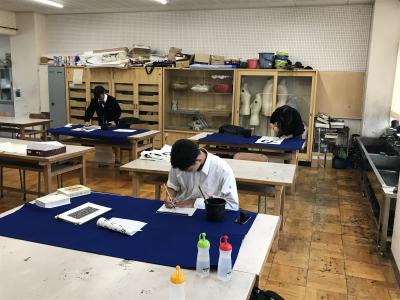 この日、芸術コース美術専攻3年生卒業制作の合評会が行われました。