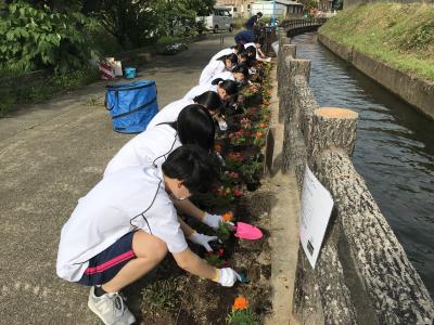 場所は中海中学校から小松市立高校の用水沿いの遊歩道で、