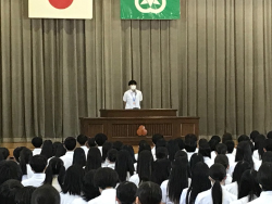 終業式では源校長が、式辞でエベレストに登頂した90歳のプロスキーヤー三浦雄一郎さんの例を挙げ、挑戦し続ける事の意義、夢を持ち努力し続ける事の大切さを生徒たちに語りました。