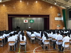 先ず式の前に、6月下旬からハンドボールU20日本代表 アジア大会に出場していた3年北林梨里さんから大会報告があり、今後の抱負を述べました。