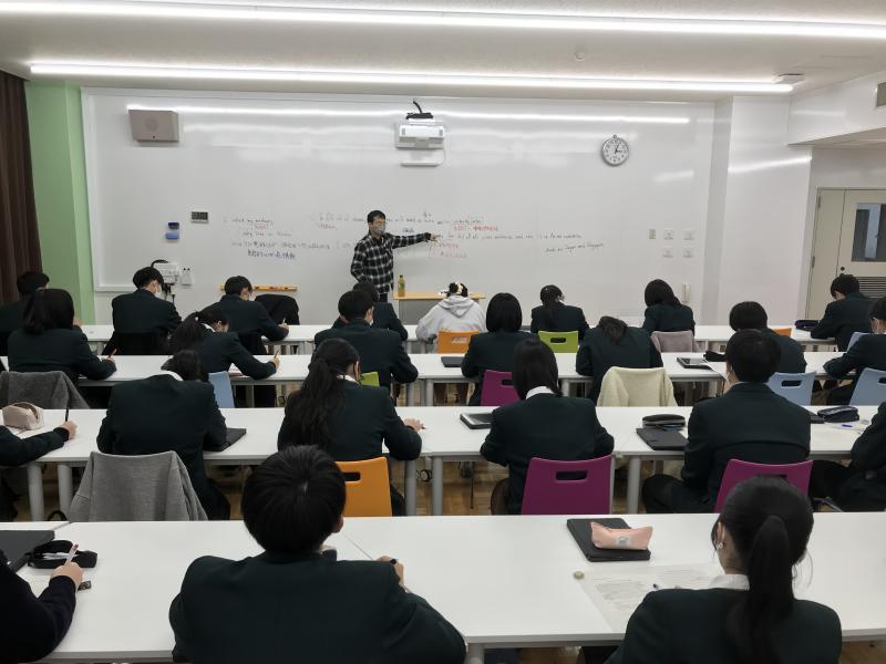 12月22日(木)放課後、予備校で活躍されている現役の講師を本校にお招きして、英語の特別講座を実施しました。1,2年生の希望者が、英文読解の授業を意欲的に受けました。生徒の感想は「難しかった」「知らないことがたくさんあった」というものが多かったのですが、講師の先生からは「みんな一生懸命に話を聞いていて、授業をしていて楽しかった」という言葉をいただきました。この講座で学んだことをこれからの英語学習に生かしてくれることを期待しています。