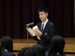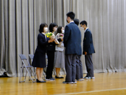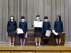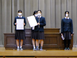 山口さんは高校3年間を通して、英語に対する学習意欲が旺盛で、英語の外部試験GTEC等でも優秀な成績を収め、英語部の部長としても活躍したことを認められ英語賞を受賞しました。受賞おめでとうございます。