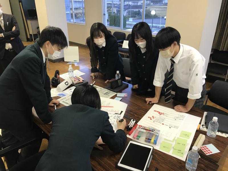 生徒達は4グループに分かれてグループ内で活発に意見交換を行い小松の将来について考えました。