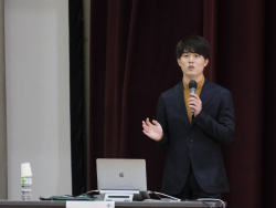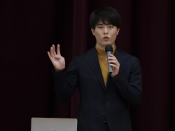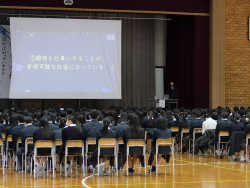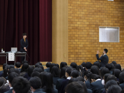 文化の日の今日、学校公開で午前は授業公開と2年総探発表会、午後からは「TikTok」や「Instagram」などのSNSで活躍中の小説紹介クリエイター・作家のけんご氏をお迎えして、「趣味を仕事に変えるには」と題して講演会が開催されました。講演では、自身の学生時代から現在に至るまでの経歴を中心にその時々でどういうことを考えていたかなど、生徒の目線で分かりやすく語って頂きました。質疑応答でも、多くの生徒の質問一つ一つに丁寧な回答を頂きました。