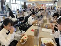 昼食はそれぞれの校内にある学食で食べ、学校の雰囲気を味わいました。