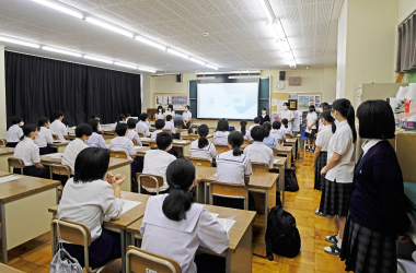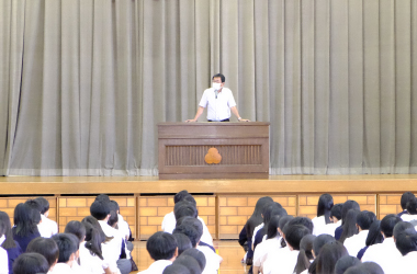 この日の午前、1年生はGTEC、2,3年生はLHの後、1学期終業式が執り行われました。式で源校長は本年度1学期を振り返り、この夏休みをどう過ごすかしっかり考えるよう、生徒たちに促しました。
