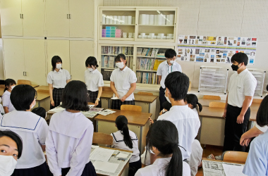 2回目の授業は、課題となっていた作品の講評をしていただきました。「小松のこれ、小松のここ」というテーマのもと、前回学んだ構図やポイントを生かして、各班個性あふれる動画・写真を撮ることができていました。先生方も思いのほかクオリティが高くて驚いたとおっしゃっていました。班ごとによかった点、改善できる点など、一つ一つ丁寧に解説をいただきました。最後は生徒達からの質問を先生方にお答えいただきました。授業後、写真や映像の世界に興味が出てきたと話す生徒が何人もいました。