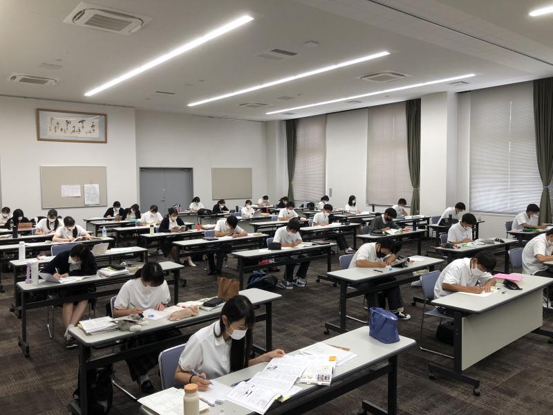 苦手分野の克服や基礎基本の完成など、一人一人が課題と目的を持って、沈思黙考して問題演習に取り組んだり、控室にいる教員のもとへ質問に行ったりして、高い意識で学習しました。一人一人の志望校は違いますが、それぞれの目標に向かって行動と運命を共にする、まさに「一蓮托生」の心持ちで勉学に励む4日間でした。残りの夏休みも、2学期以降も、今回参加できなかった級友たちを巻き込みながら「一蓮托生」で進路実現に向かっていってほしいと思います。