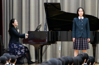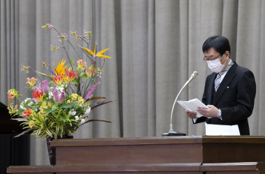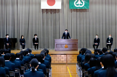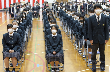 午後からは、第27回入学式が執り行われ、新たに152名の新入生が市高生として迎えられました。天気は晴天、桜は満開、まるで新入生を歓迎しているようでした。