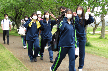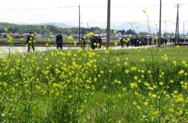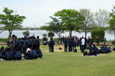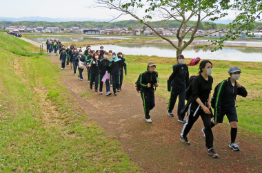 2年生は学校から木場潟公園(約6km)に向かいました。自然に触れることと、しっかり歩くことが目的のこの行事、大変疲れた様子の生徒も見られましたが、遠足とはそんなもの。穏やかな風景の中、友達と話をしながら団体でただ歩く。いつか良い思い出となるでしょう。