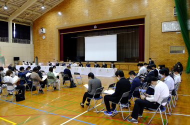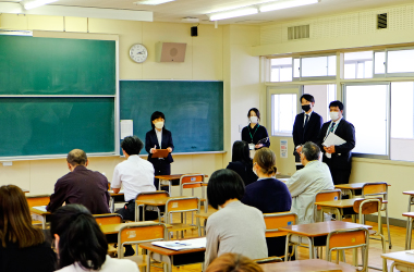 この日の午後、5限目から授業参観、その後にPTA総会、学年別説明会の順に行われ、たくさんの保護者の方々が来校されました。特に授業参観にあたる5限目の時間帯は、1年生の保護者の方が多く来られ、教室前廊下には人だかりができていました。