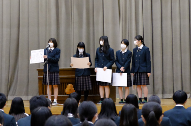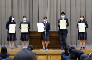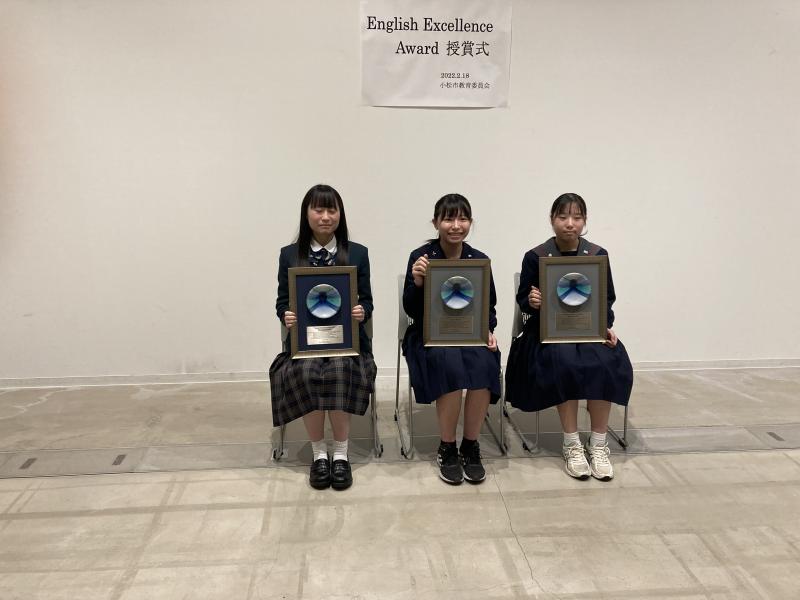 本校3年生芸術コースの増山くるみさんが小松市English Excellence Award に輝きました。増山さんは2年次に実用英語技能検定の2級を取得し、またGTECでも900点以上の高得点を獲得するなど、常に英語の研鑽に励んだことが高く評価されました。また、増山さんは吹奏楽部に所属し、芸術コースのリーダーとしても活躍し、まさに3年生で文武両道を成し遂げた象徴的な生徒の1人です。後輩の皆さんも是非増山さんに続いて下さい。