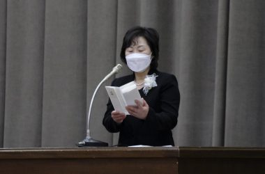 今年度もコロナ対策により在校生なし、吹奏楽演奏なしの規模縮小で行われました。