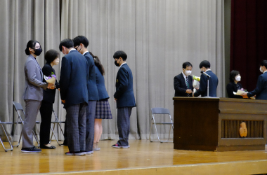 終業式では式辞として、今年度で移動となる三藤校長から、在校生1,2年生それぞれに挑戦することへの大切さを語り、エールを送りました。