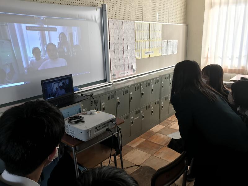 本日12H高大連携クラスでアングルスク市の第27学校とオンラインによる英語での交流を行いました。生徒達は約10人4グループに分かれて、アングルスクの同じく4グループの生徒達とそれぞれグループによる交流を行いました。生徒達はまずそれぞれの自己紹介の後、お互いの学校についてパワーポイントやビデオを使い紹介し、その後、学校のことだけではなく、その他様々なことについて、質問し合いました。生徒達は最初は緊張した様子でしたが、徐々に打ち解け、最後はかなり積極的に英語でやり取りしたグループもありました。最後には再会を誓い交流を終えました。