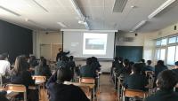 本日3限目に12H(高大連携クラス)で公立小松大学国際文化交流学部の小原文衛教授に、映画の政治的・歴史的・心理的意味の解明についてお話しいただきました。アメリカの映画に、実際にアメリカで起こった出来事やそのときの人々の心理が、映画のストーリーや映像にあらわれていることを聞き、身近な存在である映画の研究に関する内容で生徒は大変興味を持って聞いていました。