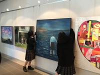 1月8日(土)から第29回小松市立高等学校芸術コース美術専攻卒業制作展「卒展」が始まります。本日は第1期会場 である小松市宮本三郎美術館にて展示作業を行いました。学芸員の方々の指導の下、作品が良くみえるように配置や光にこだわりながら作業を行いました。こちらの会場では1月8日(土)~1月23日(日)まで展示します。なお初日である1月8日(土)14:00 ~15:00 に制作者による作品解説を行います。
