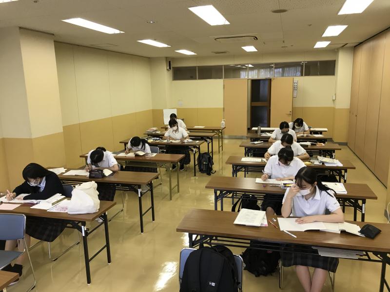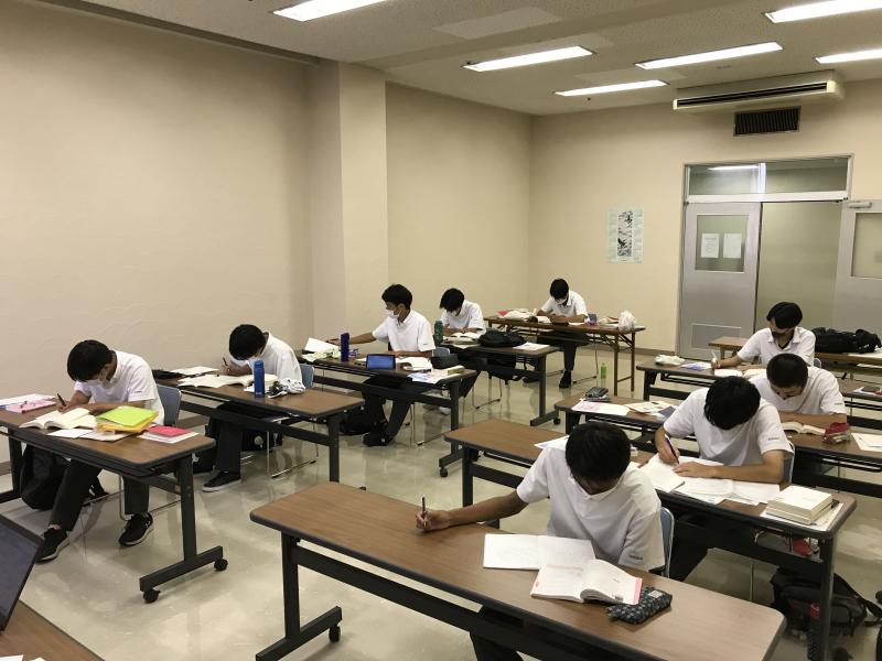 苦手分野の克服や基礎基本の完成など、一人一人が課題と目的を持って、沈思黙考して問題演習に取り組んだり、控室にいる教員のもとへ質問に行ったりして、高い意識で学習しました。一人一人の志望校は違いますが、それぞれの目標に向かって行動と運命を共にする、まさに「一蓮托生」の心持ちで勉学に励む2日間でした。残りの夏休みも、2学期以降も、今回参加できなかった級友たちを巻き込みながら「一蓮托生」で進路実現に向かっていってほしいと思います。