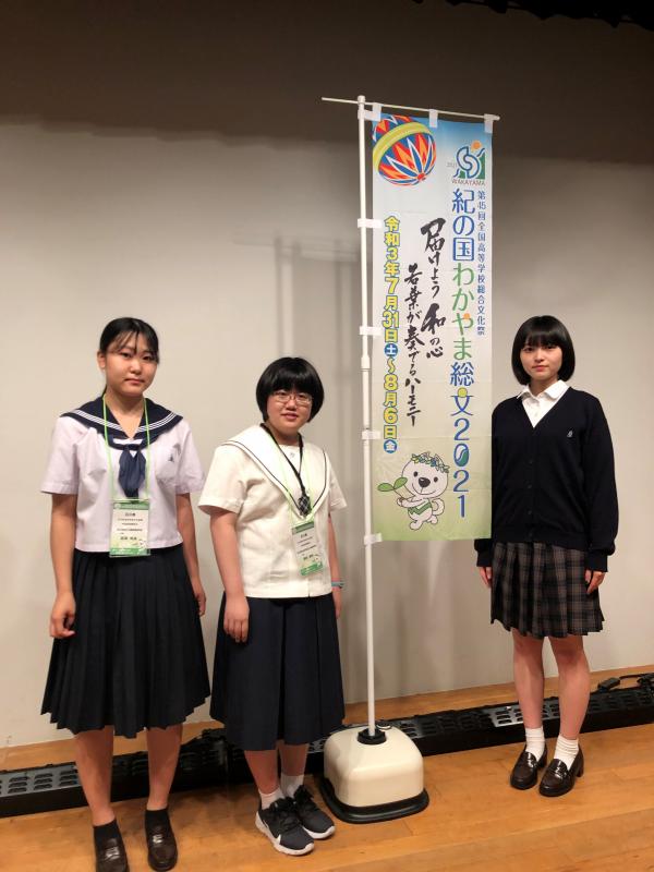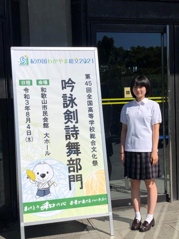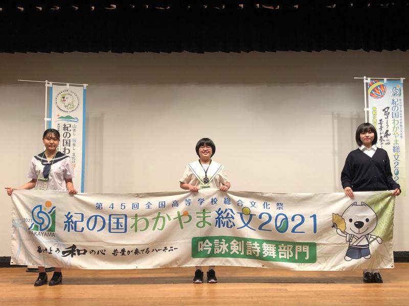 8月4日(水)和歌山市民会館で行われた、紀の国わかやま総文2021「吟詠剣詩舞部門」に参加しました。七尾高校と辰巳丘高校の生徒さんと三校合同で構成吟『ふるさと加賀能登』を披露しました。