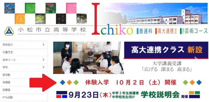 このHPのトップページにある、体験入学のバナーをクリックすると、詳細が表示されます。