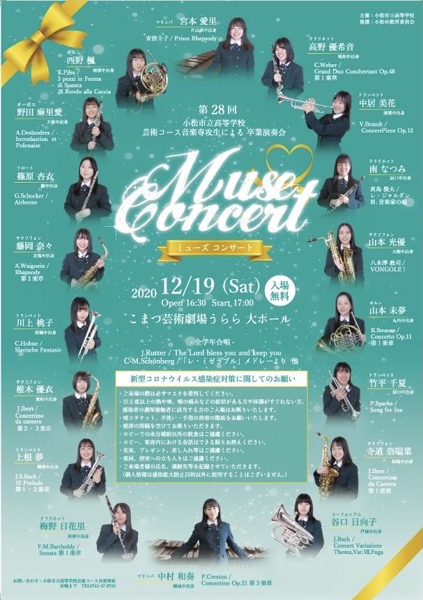 芸術コース音楽専攻生による卒業演奏会、ミューズコンサートが12月19日(土)こまつ芸術劇場うらら大ホールにて行われます。