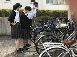 自転車乗車マナー一斉指導期間に合わせ、公安委員が昼休みに自転車のステッカーと施錠の確認をしています。安全に登校するために、自転車の整備と交通ルールを今一度見直しましょう。