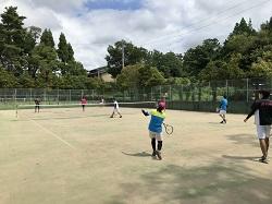 芝生を一部修繕したテニスコートでは、日焼けしたテニス部員が元気に練習を行っていました。今日ぐらいの暑さでも、写真撮影のためにテニスコートまで歩いただけで、汗だくになってしまいました。テニス部員は適切に水分補給をして休息を取りながら練習に励んでいました。