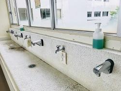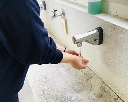 新型コロナウイルス感染防止のため、こまめな手洗いを励行しています。より安全に手洗いができるように、手洗い場の水道を自動水栓に改修しました。