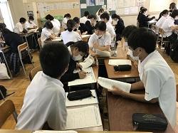 7月29日(水)、1学期最後の『総合的な探究の時間』では、2,3年生は昨年度から継続してきた探究活動の振り返りを行いました。