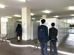 午前・午後に分散し、1年生が登校しました。久しぶりの登校のため、下足ロッカーの場所を再確認する様子が見られました。