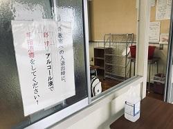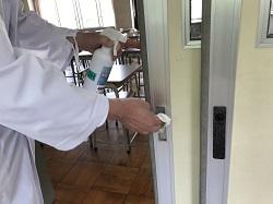 先週から分散登校が始まっていますが、午前と午後の入れ替え時と、午後の終了時に担任の先生が教室の消毒を行っています。