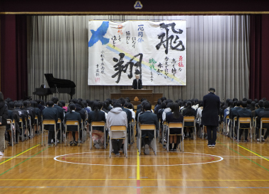 式辞で久保出校長は、これから本番に挑む3年生の受験生に「最後の最後まで諦めずに頑張ろう」とエールを送りました。