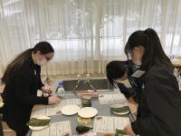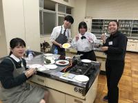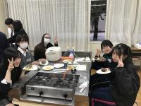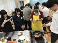 スパムやアボカドを初めて手にする生徒も多く、その調理に戸惑いつつも、英語でコミュニケーションを取りながら楽しそうに調理していました。スパムが黒焦げになった班もありましたが、できあがったスパムおにぎりはとてもおいしかったです。