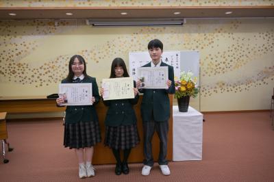 表彰式では生徒が成績を披露し、代表としてカヌー部 山口君が「この結果は、応援してくれた皆さんのおかげ」と挨拶しました。