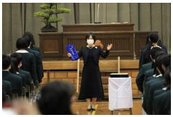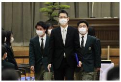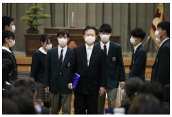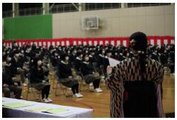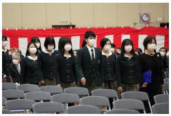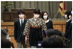 新型コロナウィルスによる異例の特別処置として、本校も行事縮小を余儀なくされました。在校生不参加、保護者人数制限、参加者のマスク義務と例年にはない緊張感の中で、卒業式が執り行われました。しかし、ここは3年生にとって最後の晴舞台、しっかり前を向き堂々と学び舎を後にして行きました。