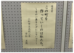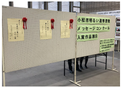 小松市役所エントランスホールにて、「小松市明るい選挙啓発メッセーコンクール」入賞者の表彰式が行われました。