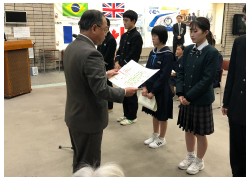 523通のメッセージの中から、14名の方が受賞されました。本校からは、早松美歓(2年)さんが優秀賞を受賞しました。写真は受賞風景です。