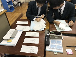 外部で調査をするグループは、日程を詰めたり、パソコンやタブレット、図書館等でさらに情報を集めたりしていました。